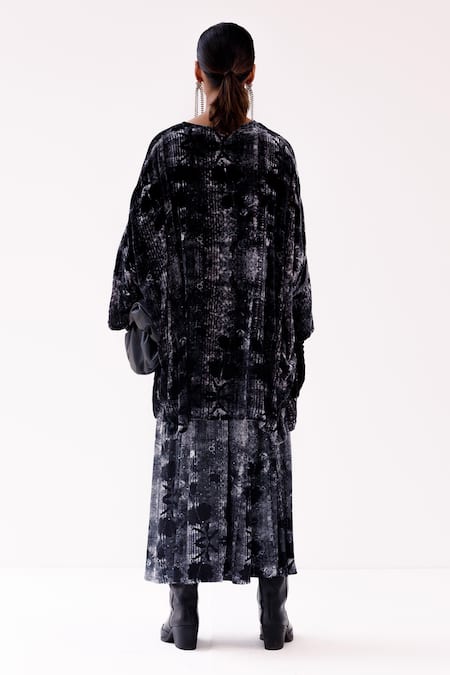 Black Silk, Velvet Round Neck Clair Abstract Faze Print Top