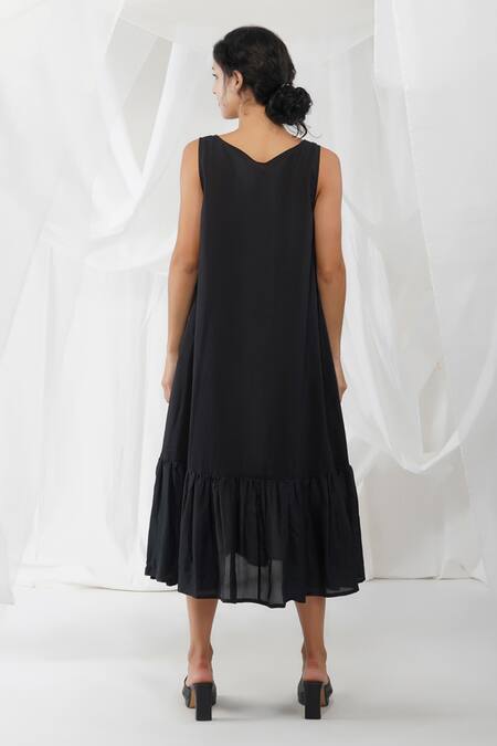 Yavi_Black Cotton Round Dakini Slip Dress_Online_at_Aza_Fashions