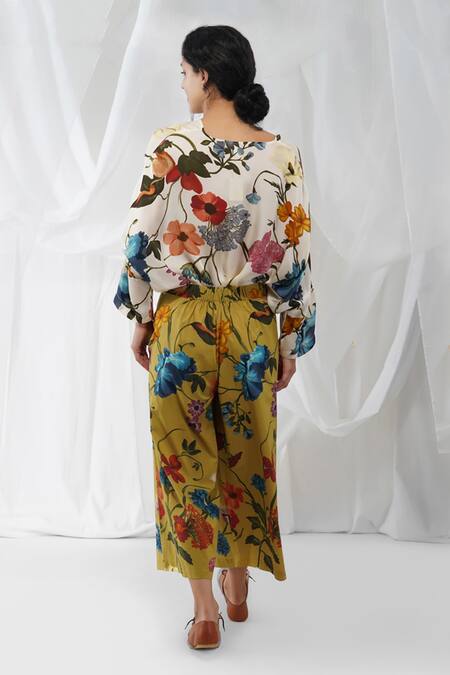 Buy_Yavi_Yellow 100%cotton Floral Motifs Hana Print Pant_at_Aza_Fashions