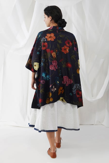Black Silk Floral Motifs Lapel Collar Kiruto Print Jacket