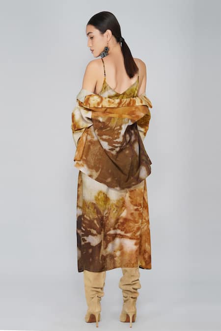 Multicolored leaf impression jacket with abstract print & front button placket.