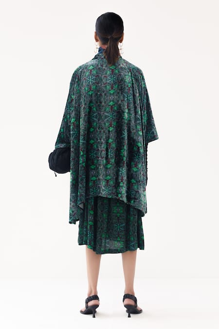 Green silk velvet jacket featuring an all-over geometric print and full sleeves