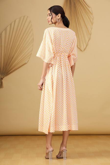 Orange Floral Motifs Round Print Kaftan