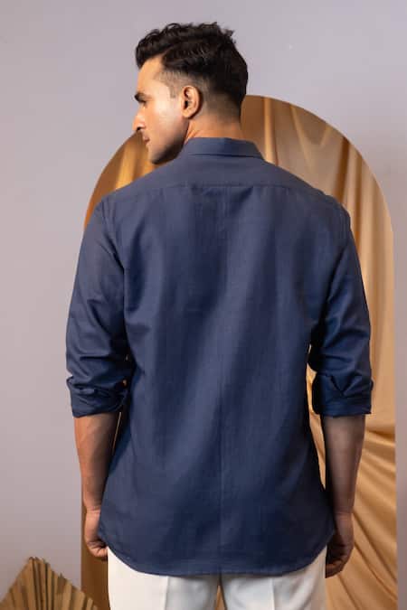 Buy_Yoseba_Blue Linen Embroidery Geometric Thread Shirt _at_Aza_Fashions