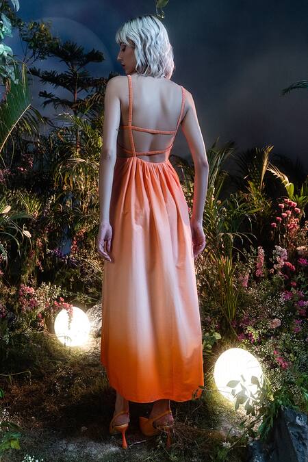House Of Eda_Orange Cotton Asymmetric Zahra Ombre Dress_Online_at_Aza_Fashions
