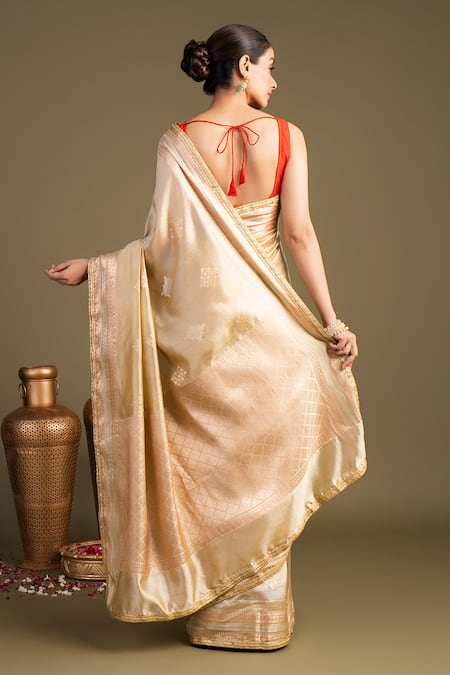 Beige Silk Katan Banarasi Handloom Saree With Unstitched Blouse Piece