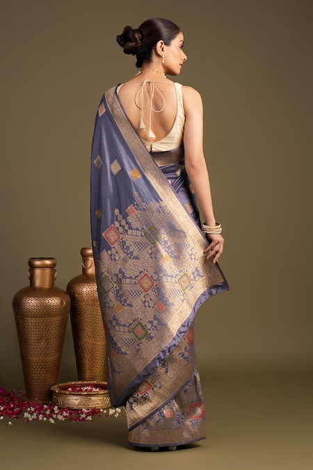 Gray Silk Pure Banarasi Handloom Saree With Unstitched Blouse Piece