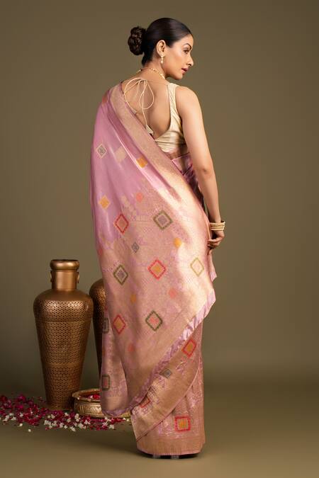 Pink Silk Pure Banarasi Handloom Saree With Unstitched Blouse Piece