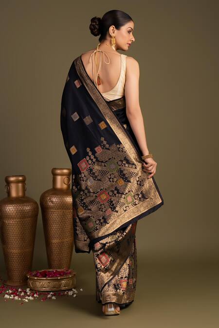 Black Silk Zari Pure Banarasi Handloom Saree With Unstitched Blouse Piece