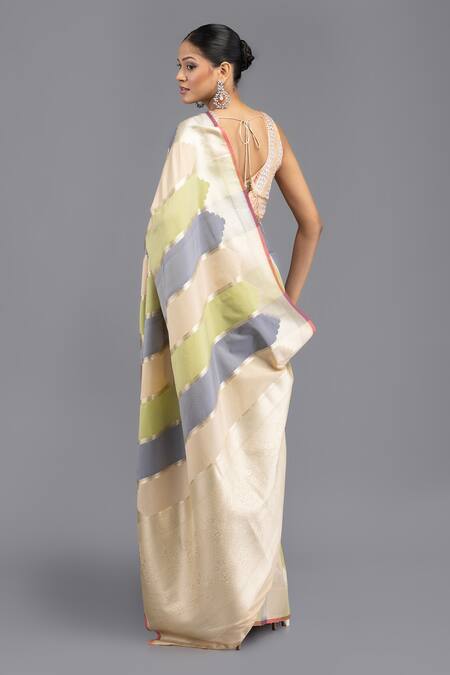 Multi Color Satin, Silk Rangkat Mughal Woven Saree With Unstitched Blouse Piece