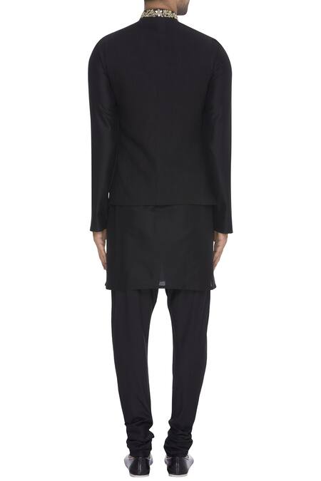 Black Zardozi Embroidered Bundi With Kurta And Churidar