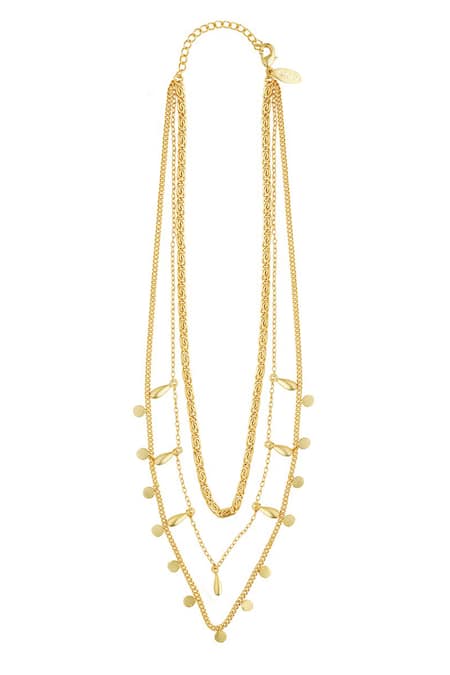Gold Plated Ethereal Geometric Carved Layered Necklace
