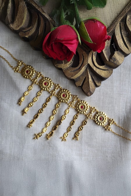 22kt gold plated choker necklace featuring embossed & filigree floral motifs