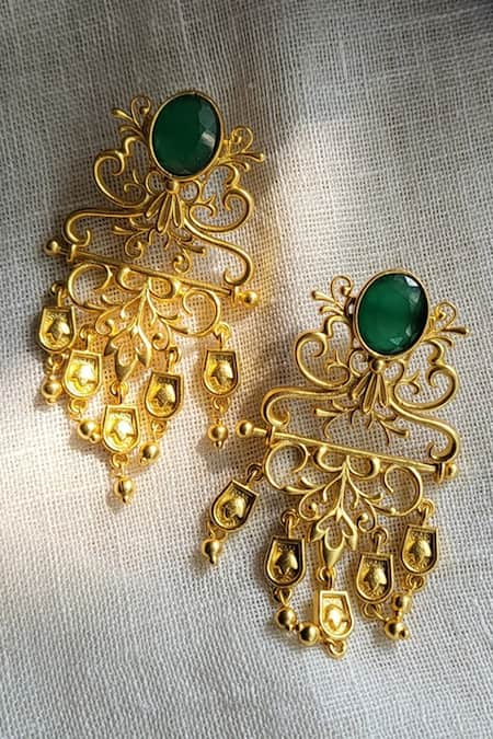 Green Chains, Stones Majestic Charm Filigree Earrings