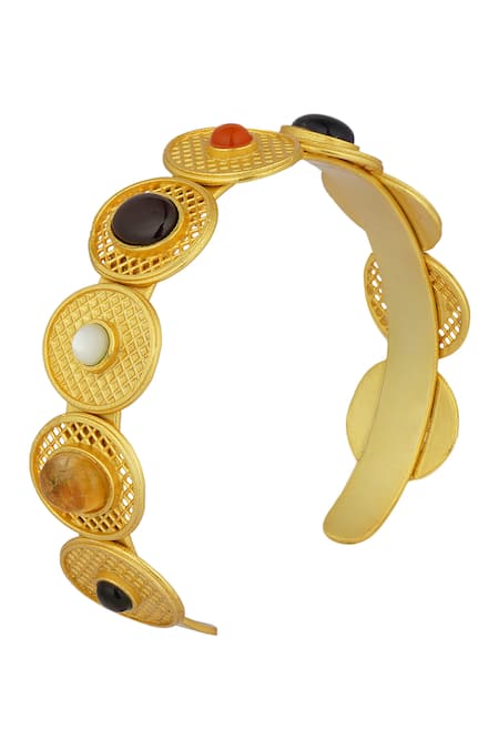 Adjustable fit for comfort, Width of 0.7 inches, Intricate brass design with gemstone inlays