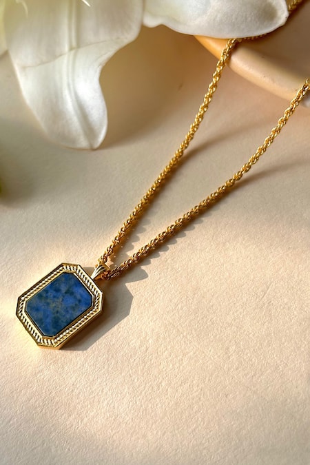 Blue lapis lazuli stone pendant necklace featuring 22kt gold plating