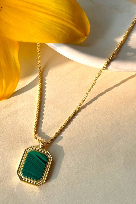 22kt gold plating with twisted chain design, Adjustable length with extension chain, Distinctive malachite stone motif