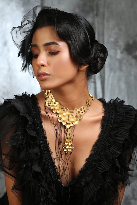 Buy_Zaza By Somya_Gold Plated Contemporary Choker Necklace _at_Aza_Fashions