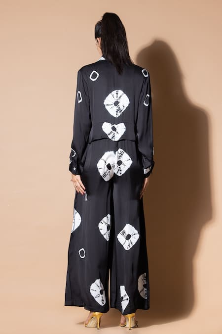 Black Modal, Satin Collared Tie-dyed Pattern Full Sleeve Jumpsuit