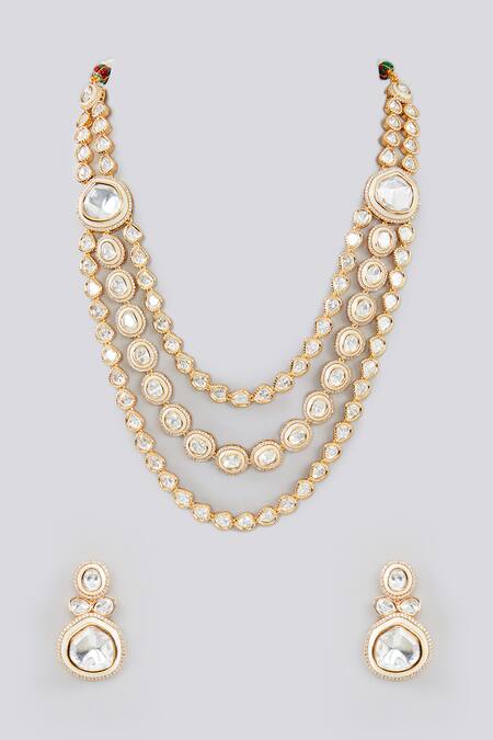 Gold Plated Diamonds, Stones Amala Layered Kundan Embellished Jewellery Set