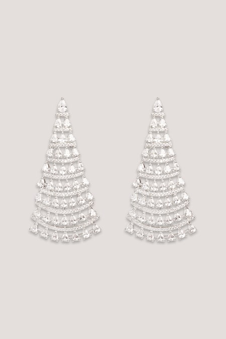 White finish dangler earrings featuring a cascading design with faux diamonds
