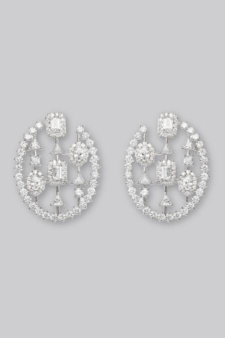 White Fabric Flowers Faux Diamond Embellished Stud Earrings