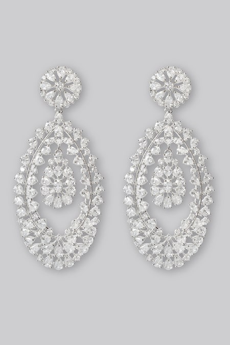White finish geometric and floral carved dangler earrings featuring faux diamond stone embellishments