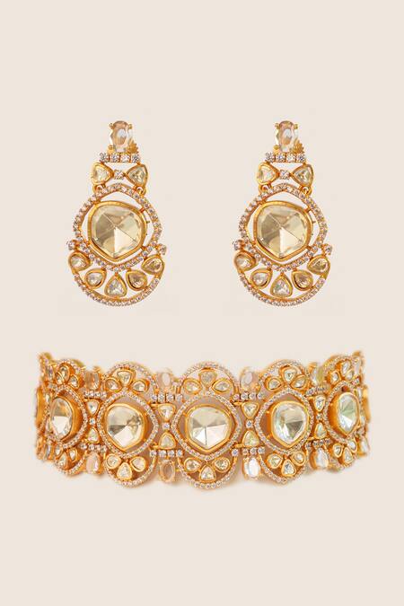 Gold Plated Stones Moissanite Studded Choker Set