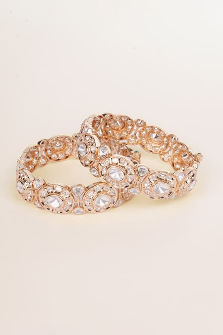 Gold Plated Stones Kundan And Polki Studded Bangles - Set Of 2