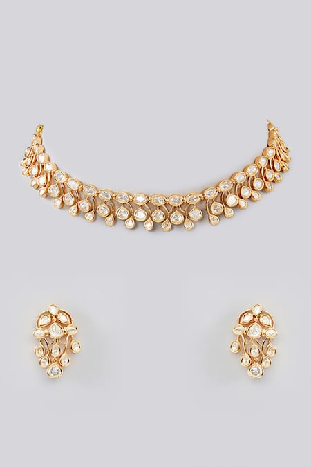 Buy_Zevar By Geeta_Gold Plated Stones Kundan Embellished Choker Necklace Set_at_Aza_Fashions