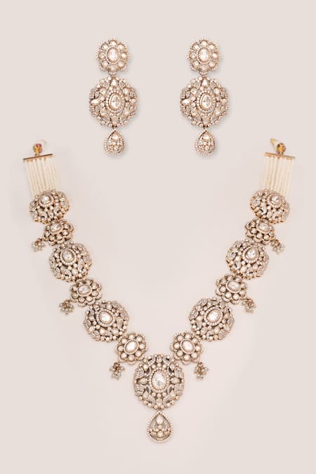 Gold Plated Imitation Diamonds Kundan Polki Long Necklace Set
