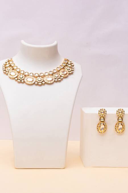 Gold Plated Diamonds, Stones Kundan Polki Necklace Set