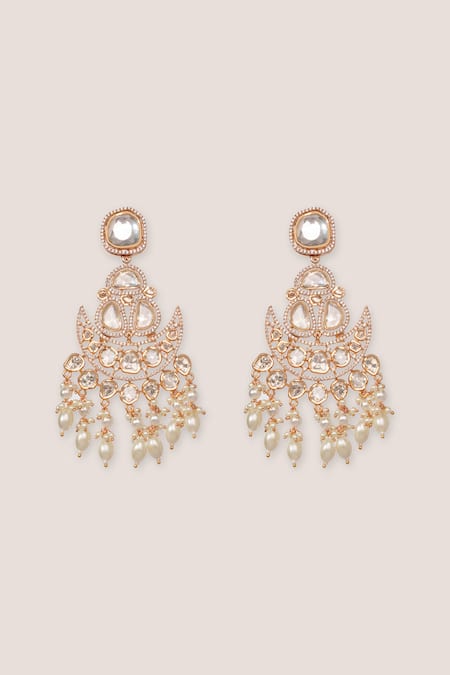 Buy_Zevar By Geeta_Gold Plated Crystals, Pearls Moissanite Finish Chandbalis _at_Aza_Fashions