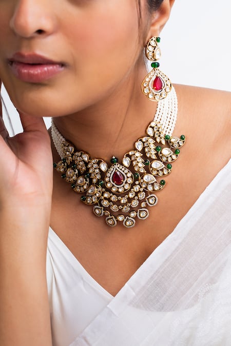Multi Color Pearls, Stones Paisley Blossom Kundan Choker Set