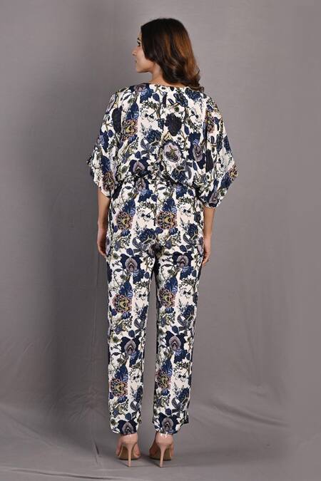Buy_Bohame_Off White Crepe Floral V Neck Zinnia Print Jumpsuit_Online_at_Aza_Fashions