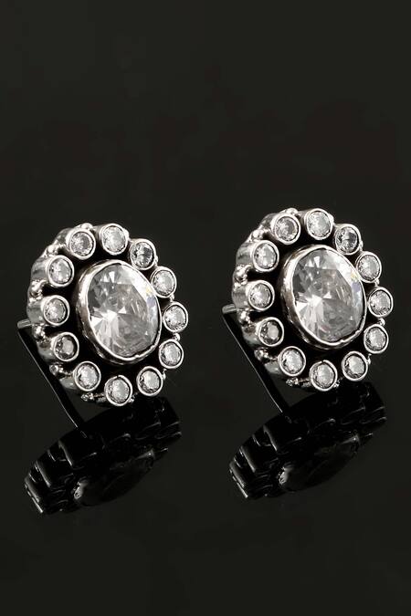 Buy_Noor_Silver Plated Crystals Zircon Stone Embellished Stud Earrings_at_Aza_Fashions