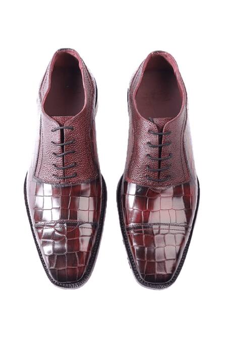 Wine oxford shoes featuring croc embossing and pebble grain upper