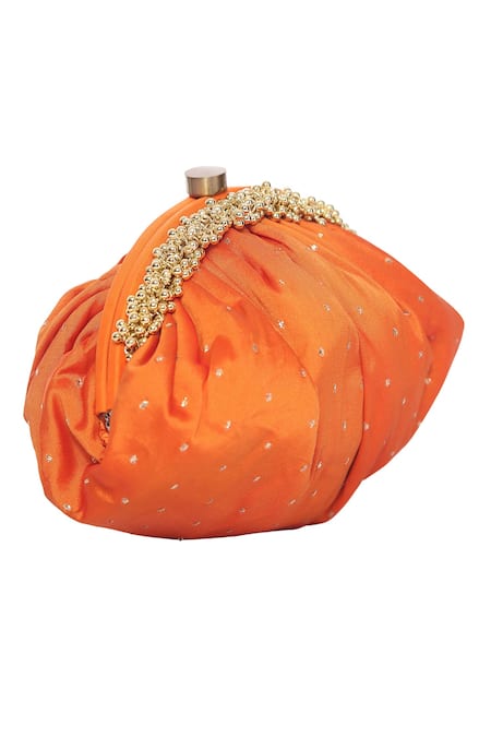 Orange clutch featuring all-over embroidery and cluster ghunghroo embellishments