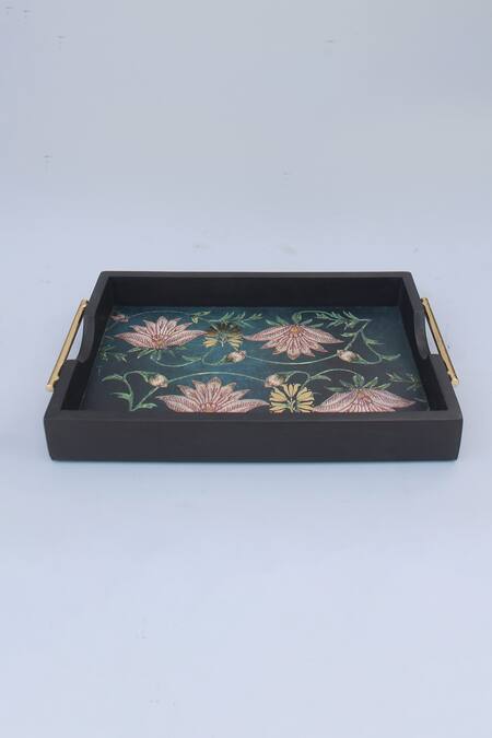 Handcrafted, Rectangle shaped, Product Finish: Textured Matte, Dimensions L x B x H (in inches):, Small: 9 x 13 x 1.5, Large: 12 x 18 x 1.5, Note: Only the tray shown in the image is being sold, Disclaimer: Each of these pieces are individually handcrafted. The placement of the print in each shape may differ slightly, from piece to piece.