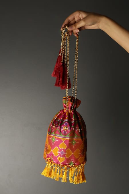 Aditi Gupta Pink Embroidery Banarasi Silk Embellished Potli Bag