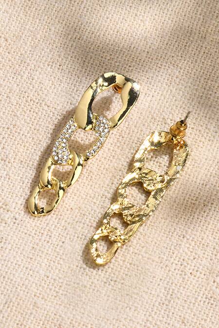 Gold Plated Imitation Diamonds Chic Interlink Embellished Earrings