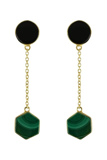 Black onyx and malachite dangler earrings featuring a push back clasp closure
