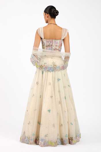 Ivory Silk, Tulle Square Neck Azalee Saree Lehenga Set