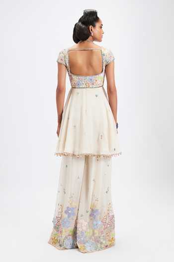Ivory Georgette Square Neck Bleuciel Kurta Sharara Set