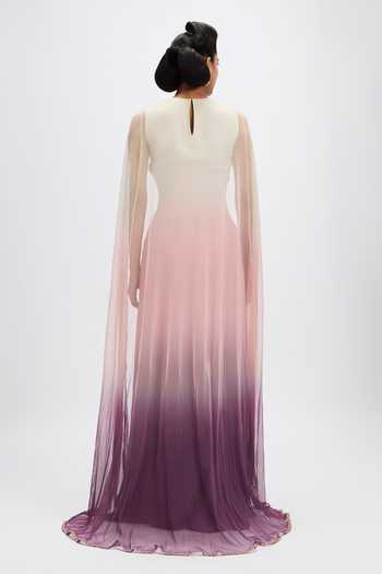 Matilda dusk applique embellished georgette gown with cape detailing.