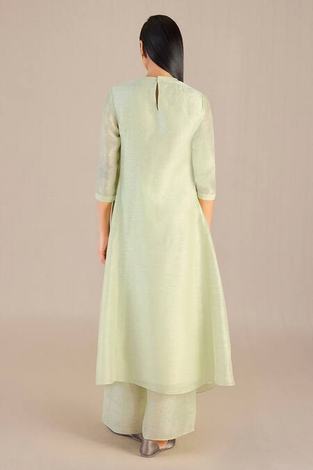 Green Linen, Silk Round Neck Adiva Plain A-line Kurta Set