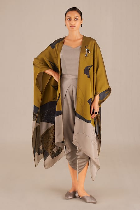 Buy_Ampm_Brown Cotton Asfa Cape Dhoti Pant Set