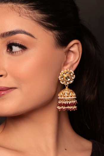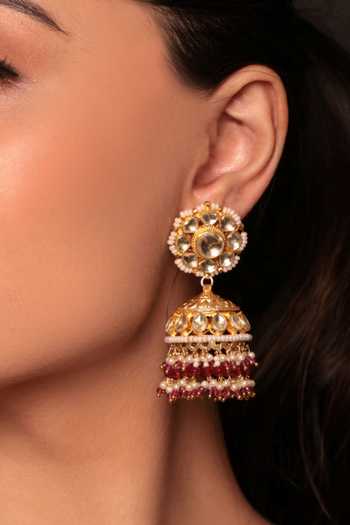 Pachi kundan jhumkis with an exquisitely handcrafted design. Ideal for weddings and festivities.