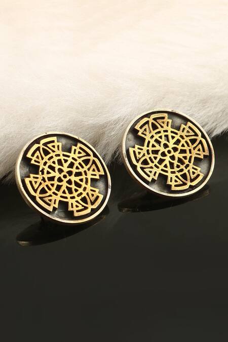 92.5 sterling silver, dual toned antique ear studs with floral pattern and cutwork details.