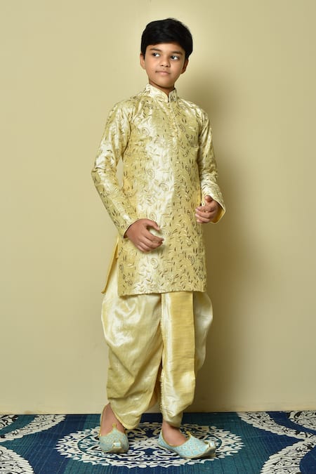 Buy_Petite Pomme_Beige Silk Stones Embroidered Paisley Kurta And Dhoti Pant Set _Online_at_Aza_Fashions